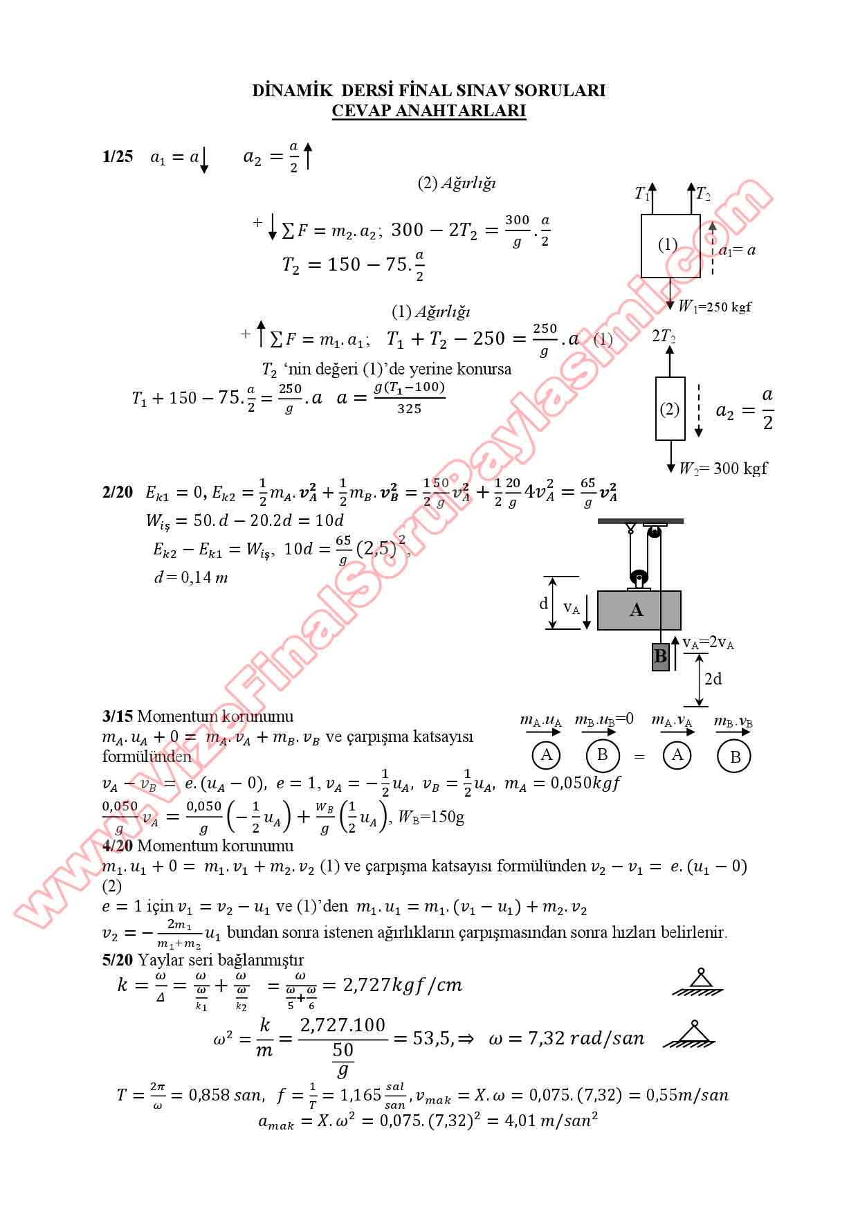 Dinamik Dersi Final Soruları ve Cevapları - 2015 16-06-2015, 19:12