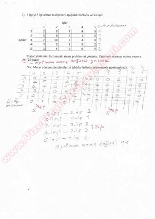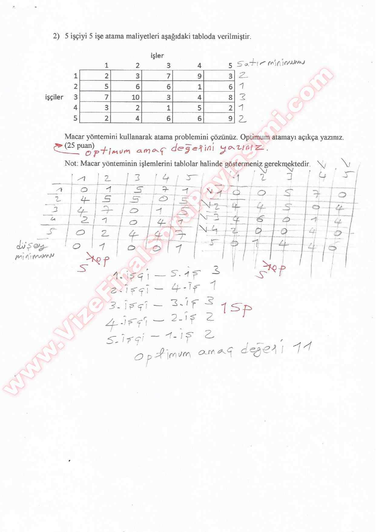 Yöneylem Araştırması Vize Soruları 7-07-2015, 15:00