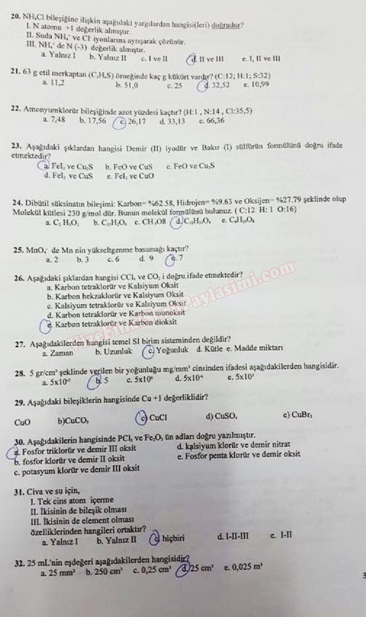 Kimya Dersi Vize Soruları Cevaplari 2015 Cevaplari Test Fırat Üniversitesi