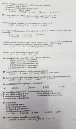 Kimya Dersi Vize Soruları ve Cevapları - 2015