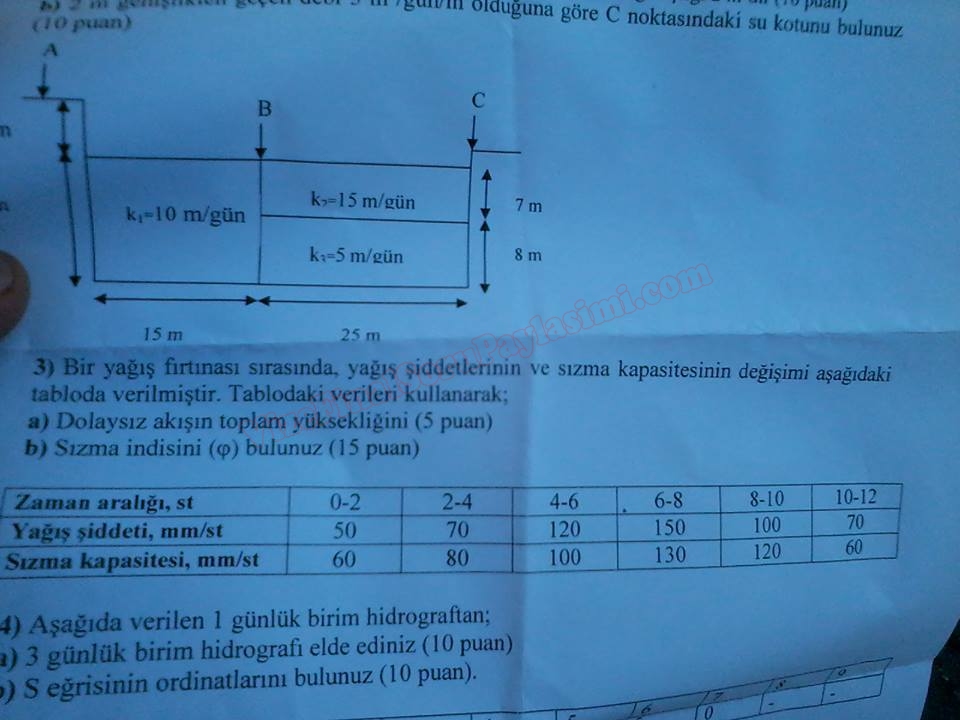 Hidroloji Dersi Sınav Soruları 28-06-2015, 14:27