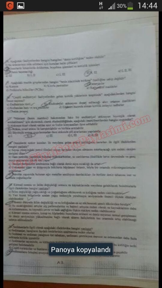 Su Kalite Kontrolü Dersi Bitirme Sınav Soruları (A Grubu)