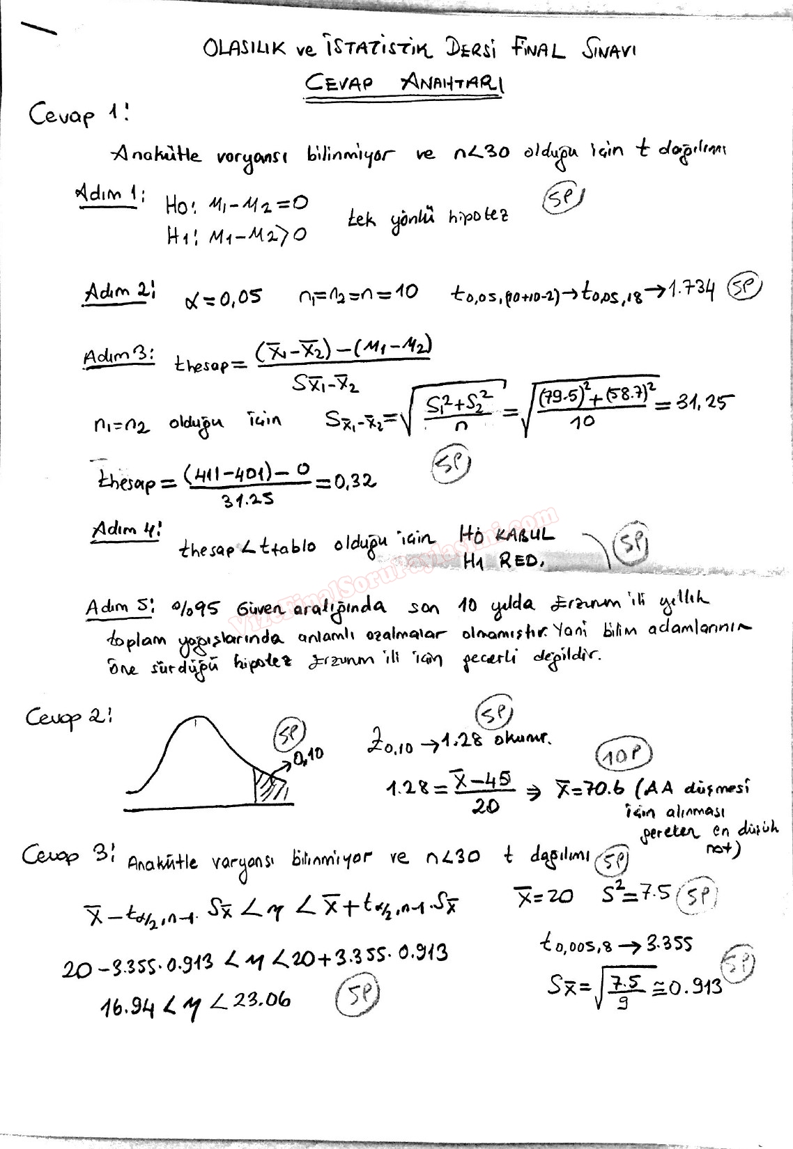 Olasılık ve İstatistik Final Soruları Ve Cevapları