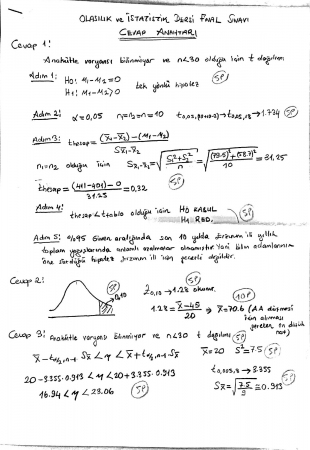 istatistik Olasılık ve İstatistik Final Soru ve Cevapları