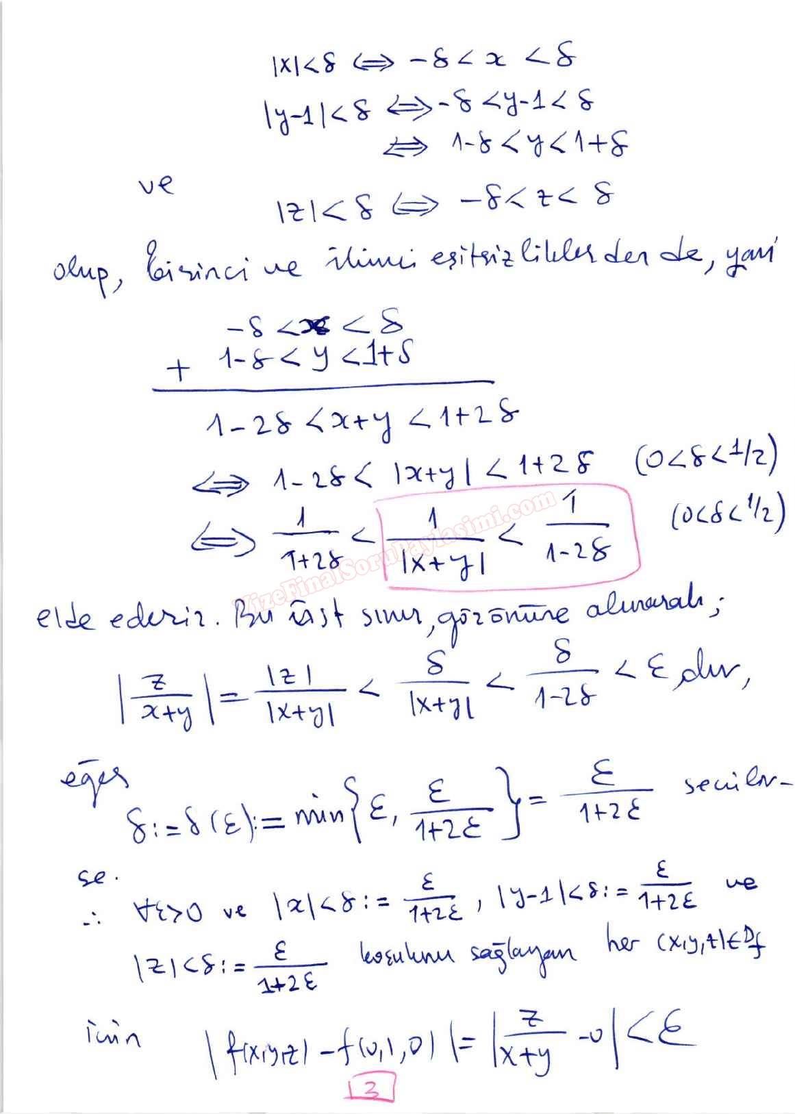 Analiz -3 3.kısa Sınav Soruları ve Cevapları