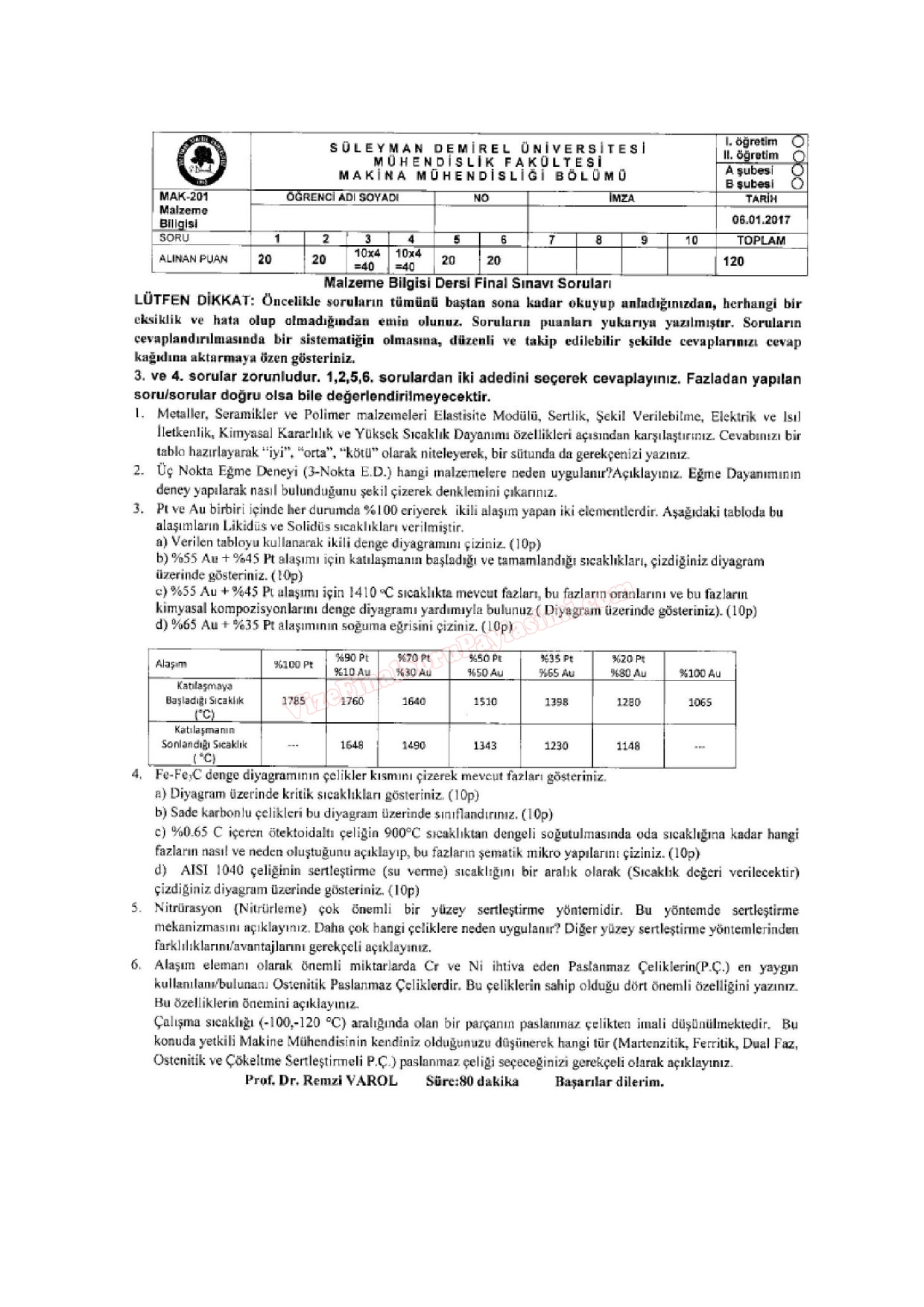 Malzeme Bilgisi Dersi Final Soruları 1-01-2017, 17:10