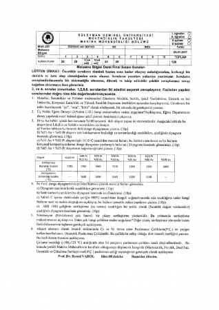 Malzeme Bilgisi Dersi Bütünleme Soruları 1-01-2017, 17:04