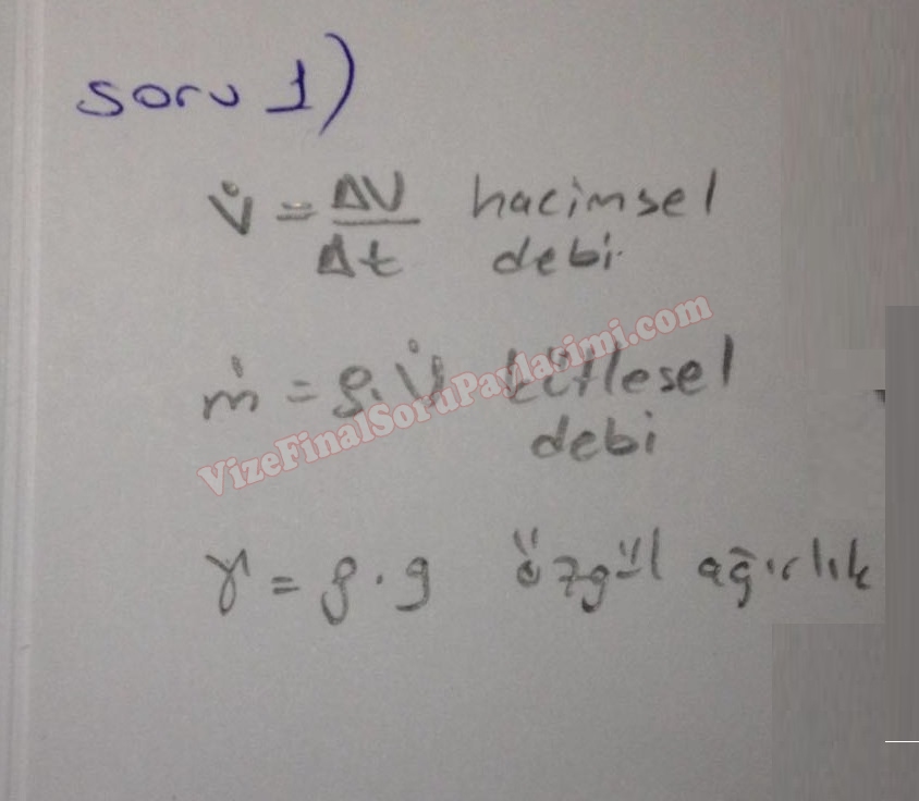 Akışkanlar Mekaniği -1 Final Soruları ve Cevapları -2017
