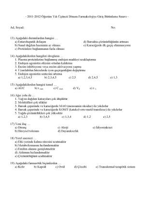 Farmakolojiye Giriş Dersi Final Soruları 5-05-2022, 00:52