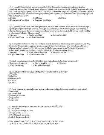 Psikiyatri Sınav Soruları 14-10-2022, 16:22