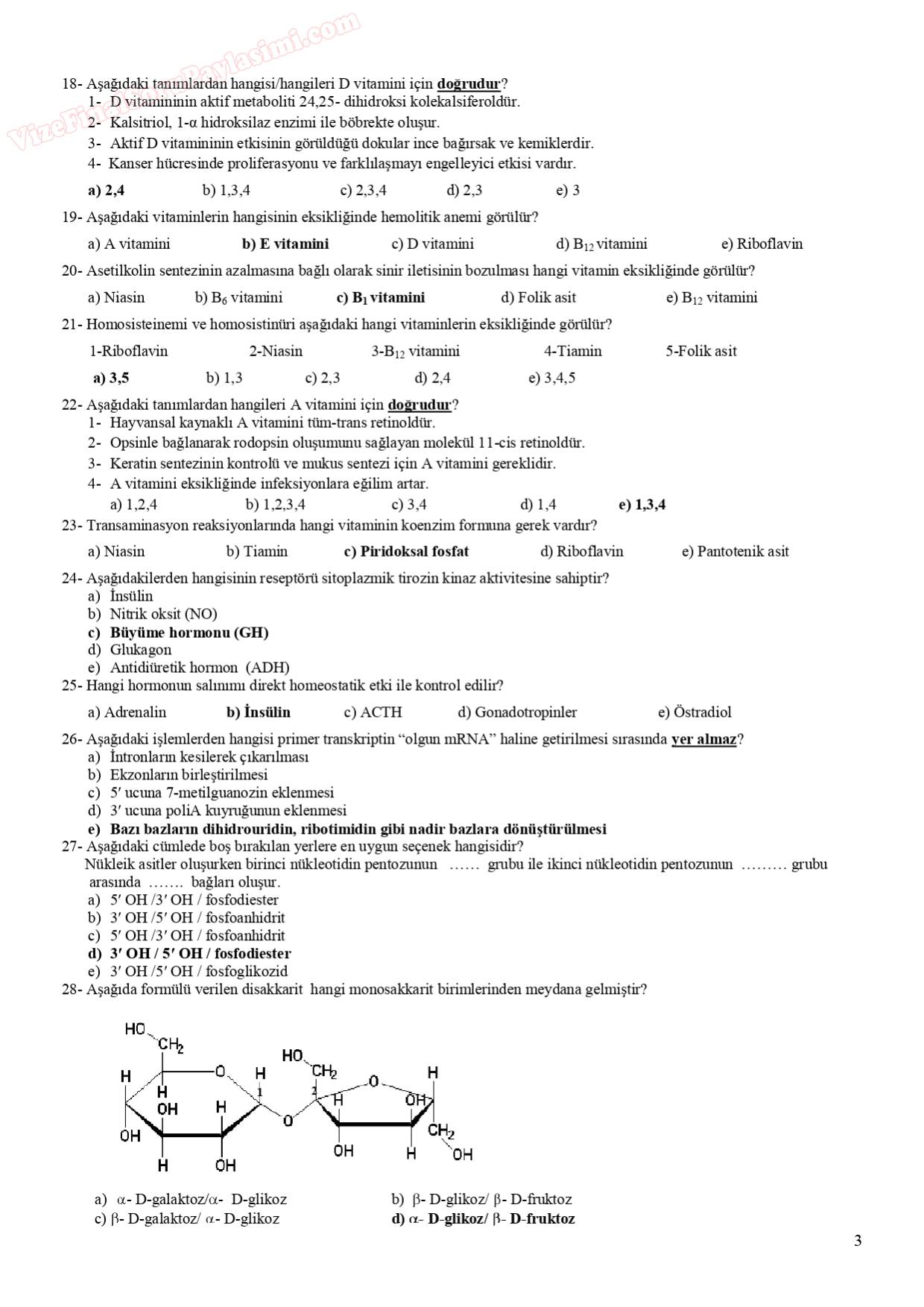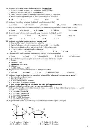 Vize ve Final Soruları / İstanbul Üniversitesi / Temel Biyokimya Sınav Soruları