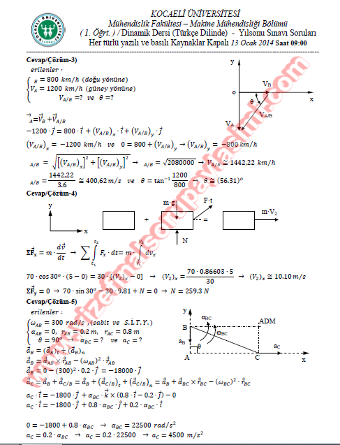 Dinamik Dersi Vize Soruları - 2013 18-06-2014, 23:02