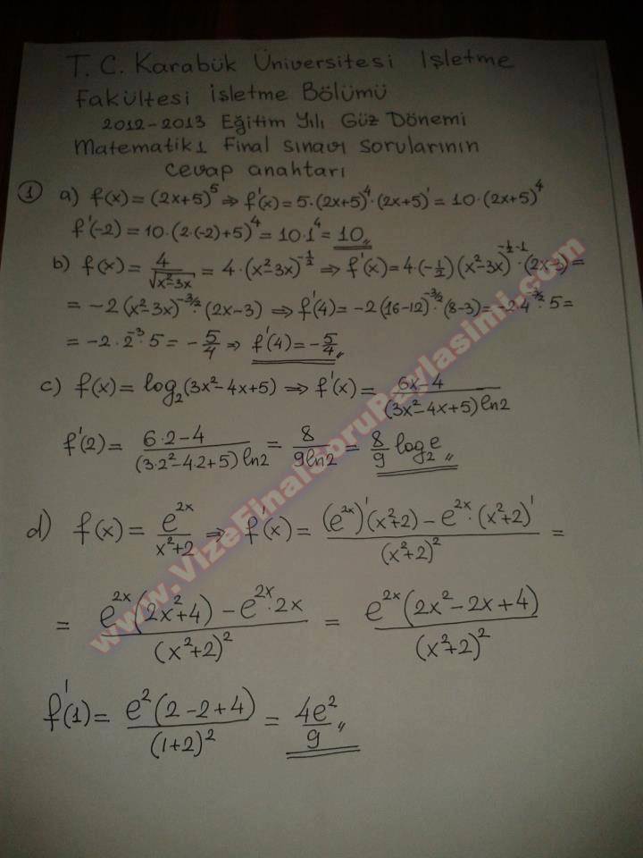 Matematik 1 Final Soruları 3-12-2014, 20:57