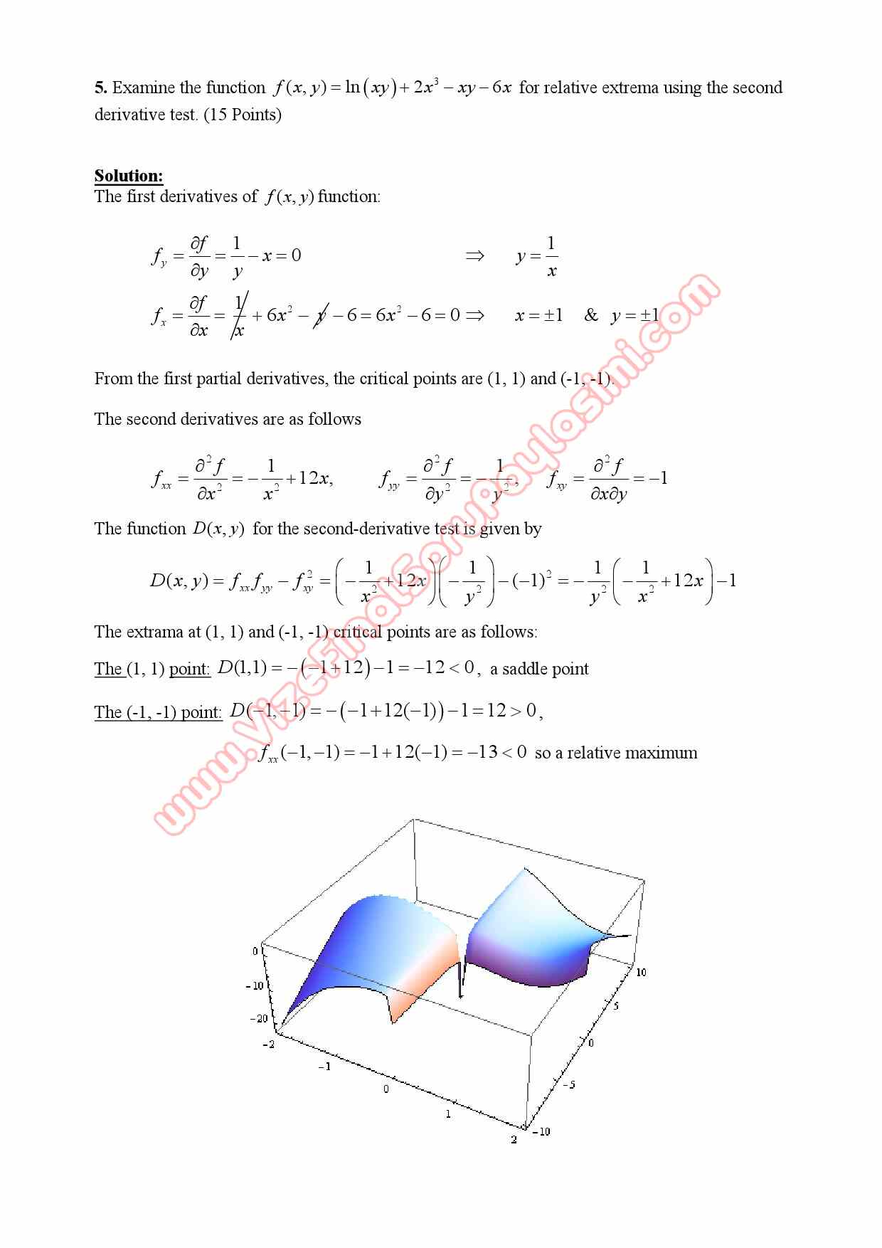 Calculus For Functions Of Several Variables Second Short Exam Questions And Solutions Fall 2013 8-11-2015, 23:59