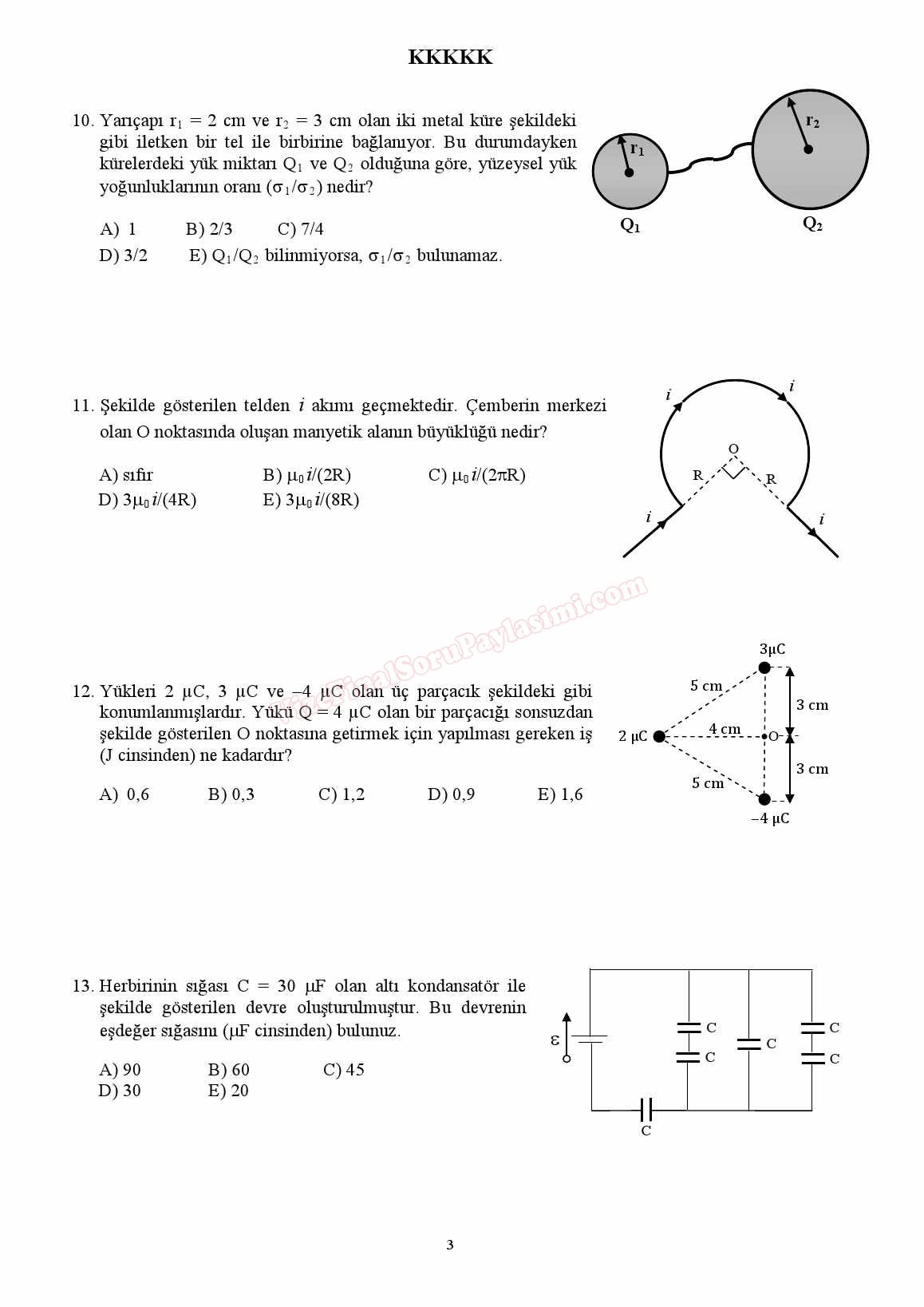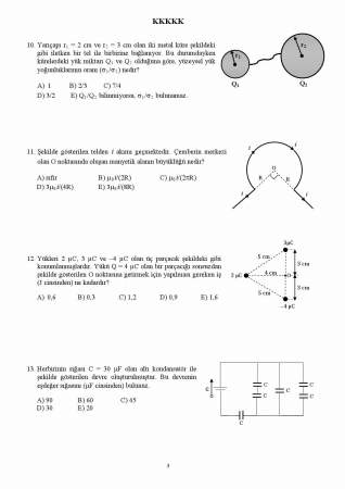 Düzce Üniversitesi Fizik -2 Final Soruları genel sınav Test Soruları