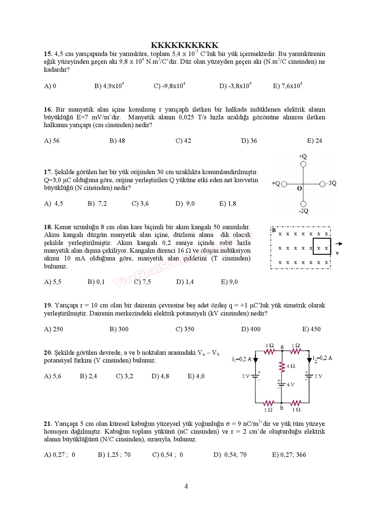 Fizik -2 Genel Sınav Soruları ve Cevapları