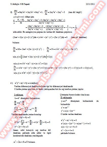 Diferansiyel Denklemler Yaz Okulu Vize Soruları Ve Cevapları-2012 12-12-2014, 15:01