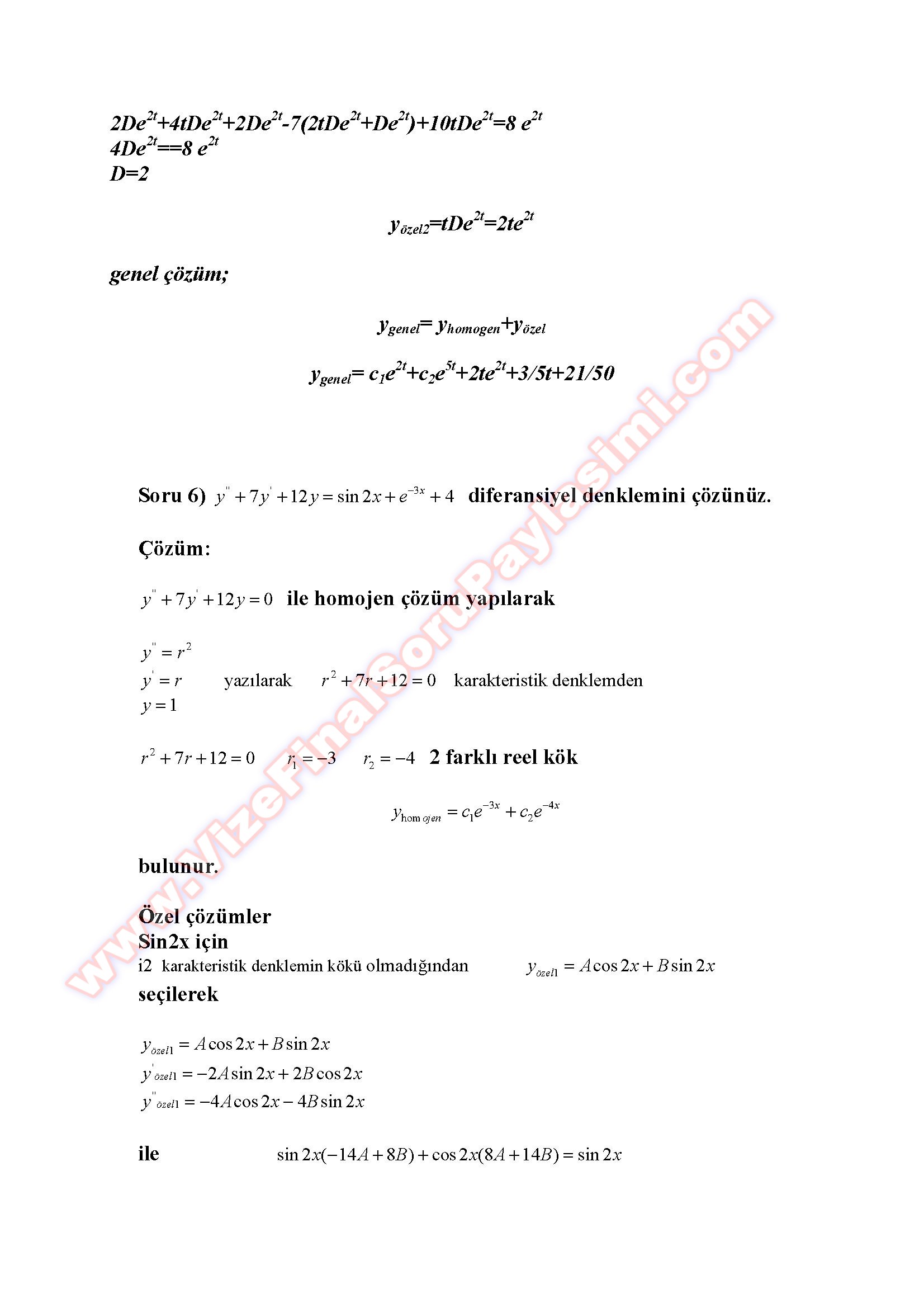 Mühendislik Matematiği (Diferansiyel Denklemler) Vize Soruları 20-07-2014, 21:59