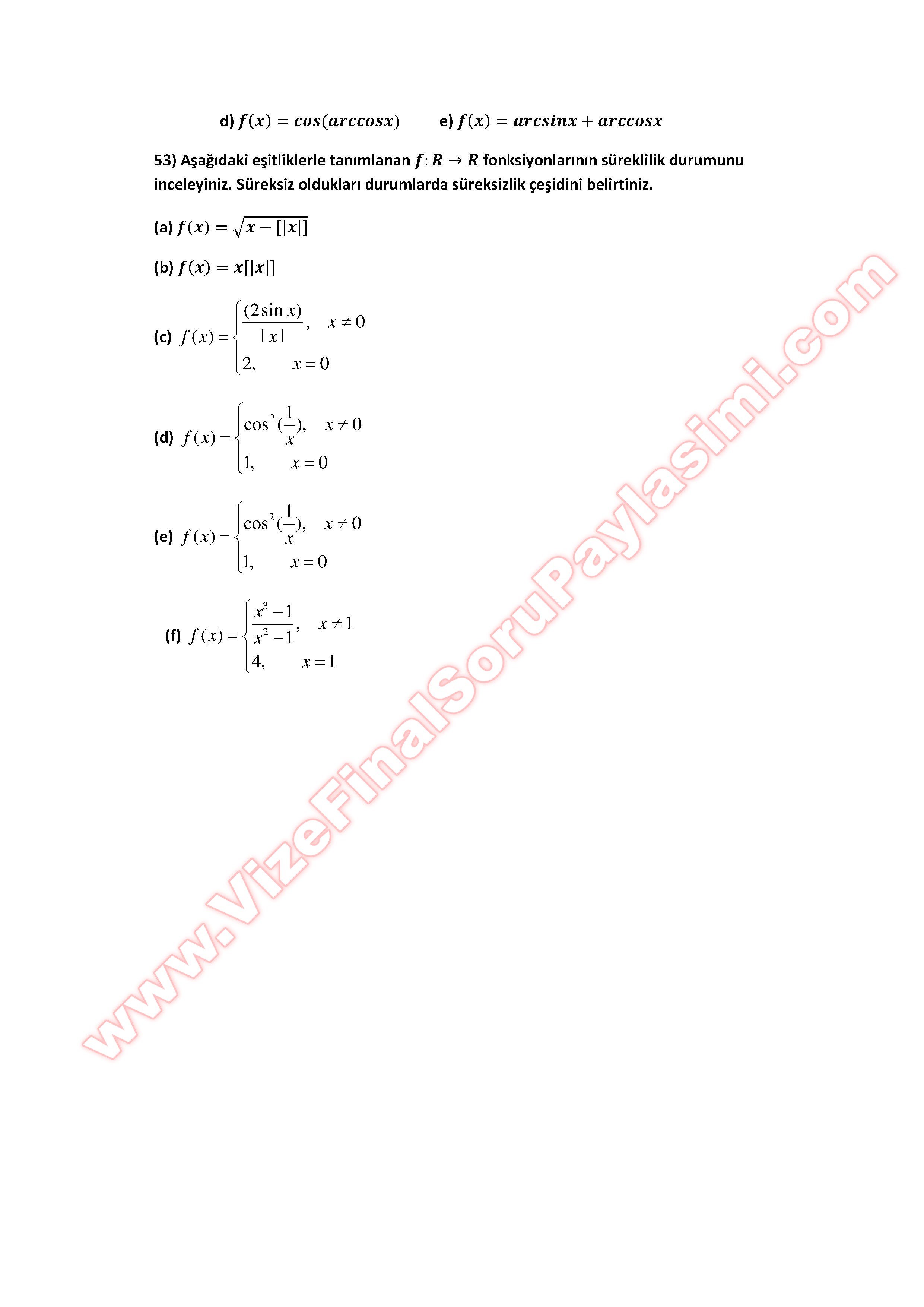 Matematik -1 Final Çalışma Soruları 29-03-2015, 02:45