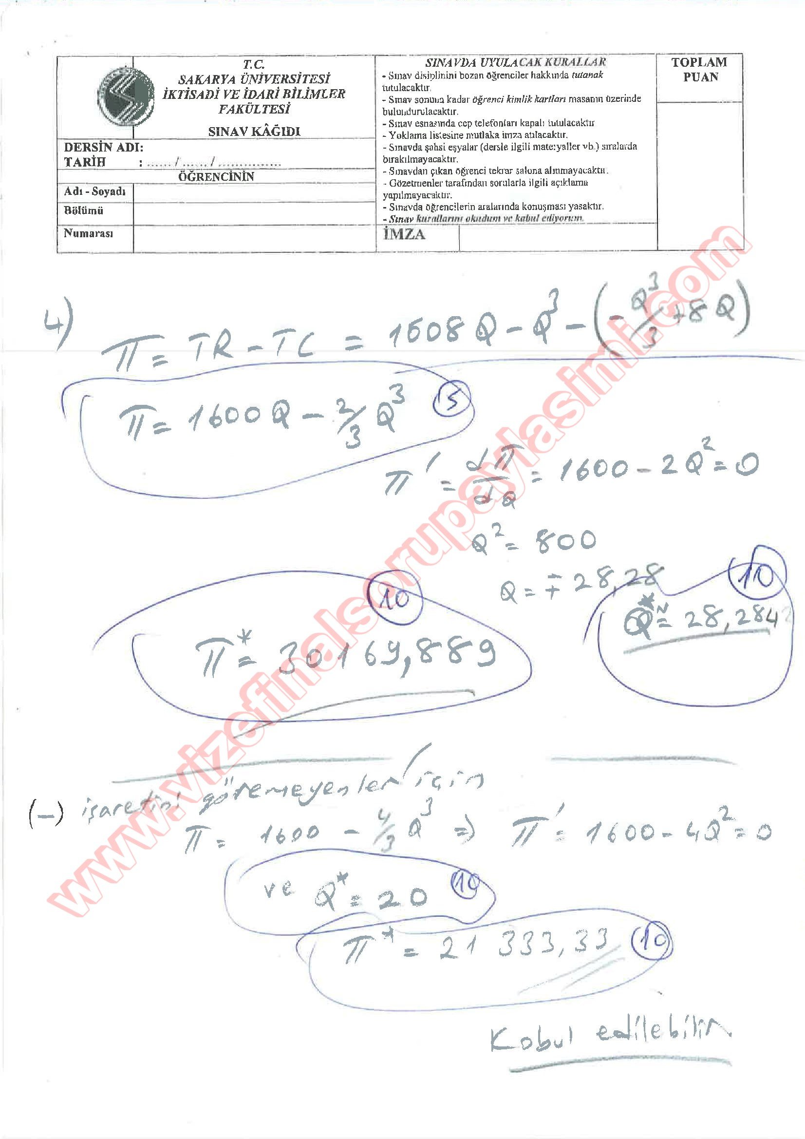 Vize ve Final Soruları / Sakarya Üniversitesi / İktisadi Matematik