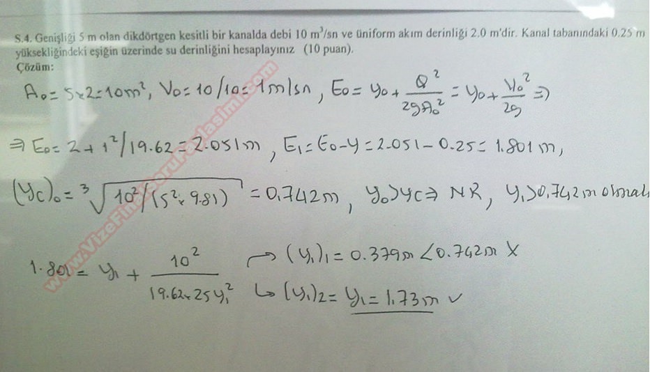 Vize ve Final Soruları / Karadeniz Teknik Üniversitesi / Hidrolik Dersi