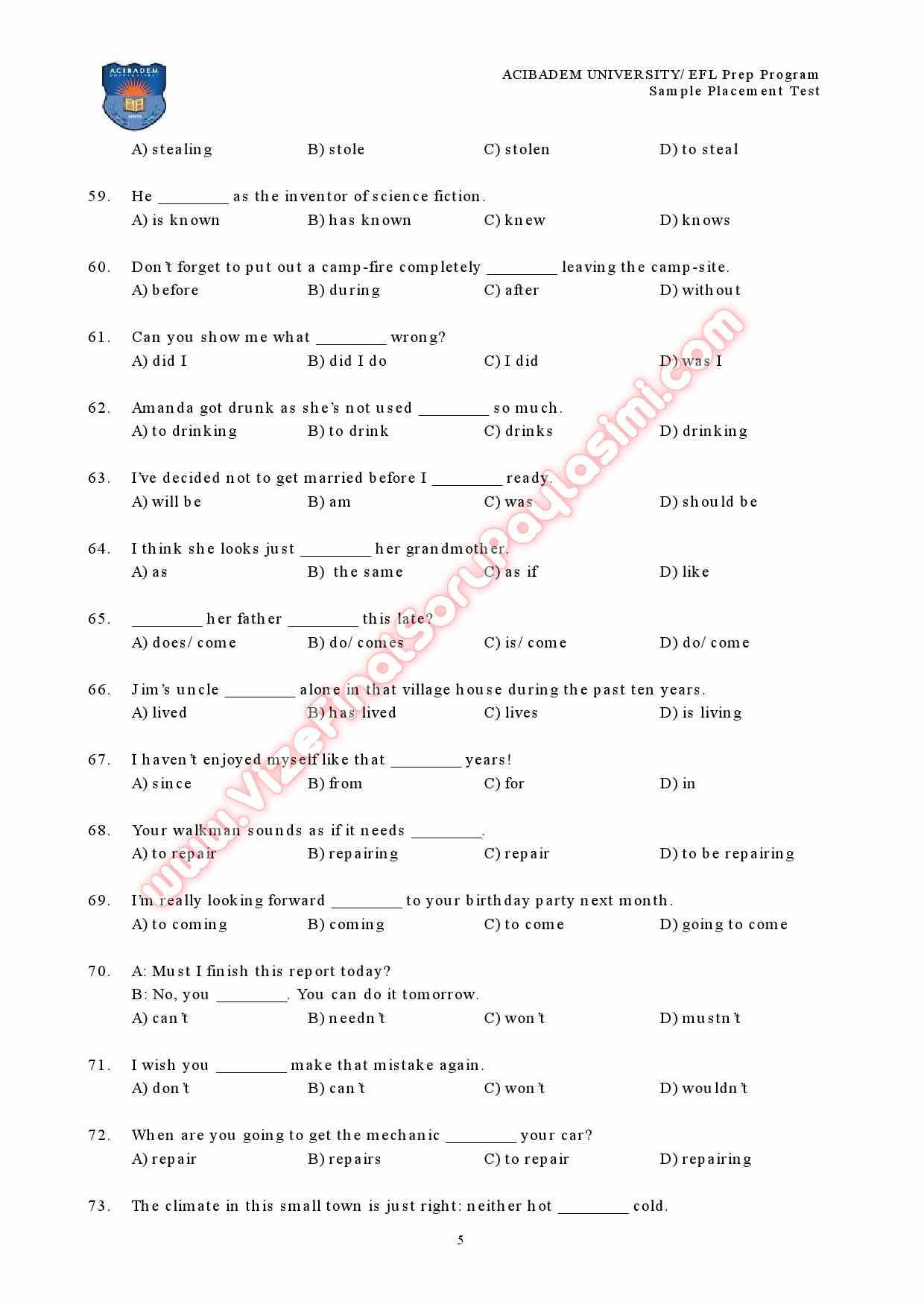 Acıbadem Üniversitesi İngilizce Muafiyet Soruları