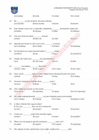 acibadem2 universitesi ingilizce muafiyet sorulari