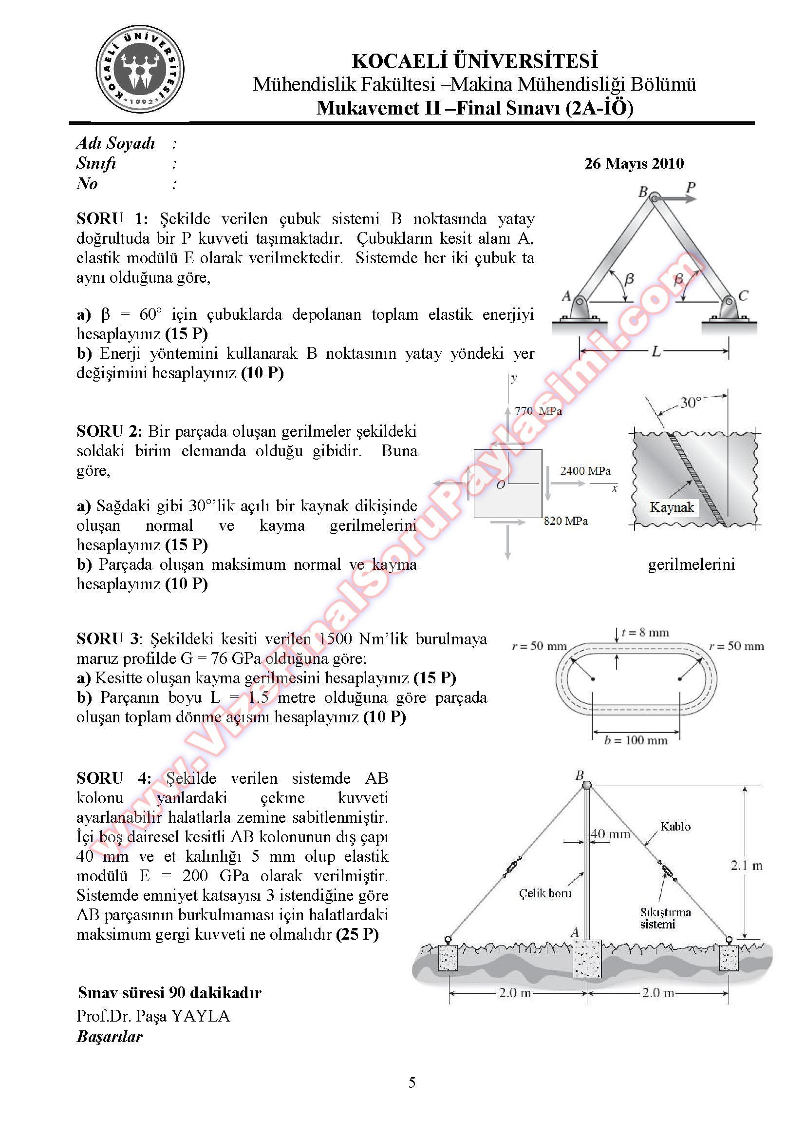 Mukavemet 2 Bütünleme Soruları ve Çözümleri 23-07-2014, 21:20