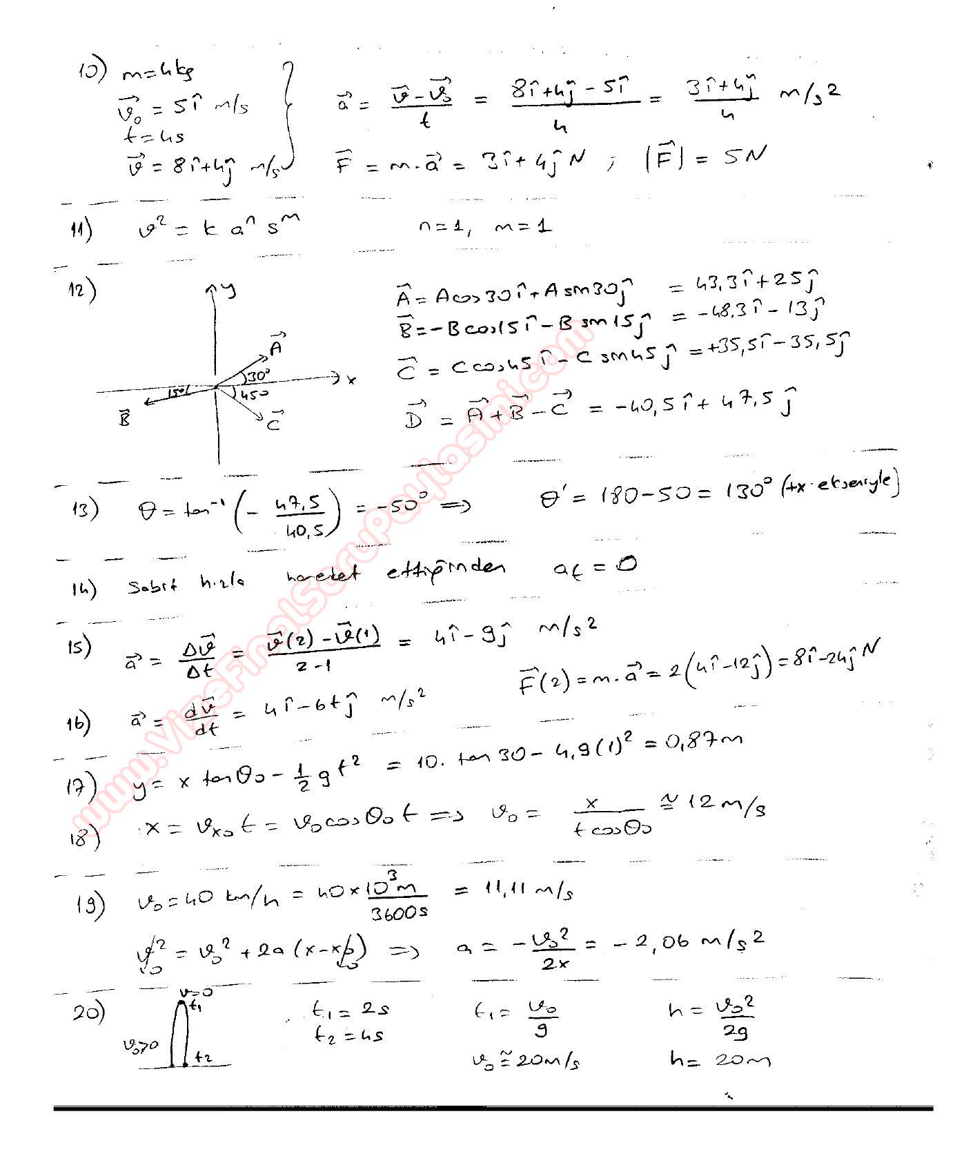 fizik-1 yaz okulu vize sorulari cevaplari cozumleri cumhuriyet uni