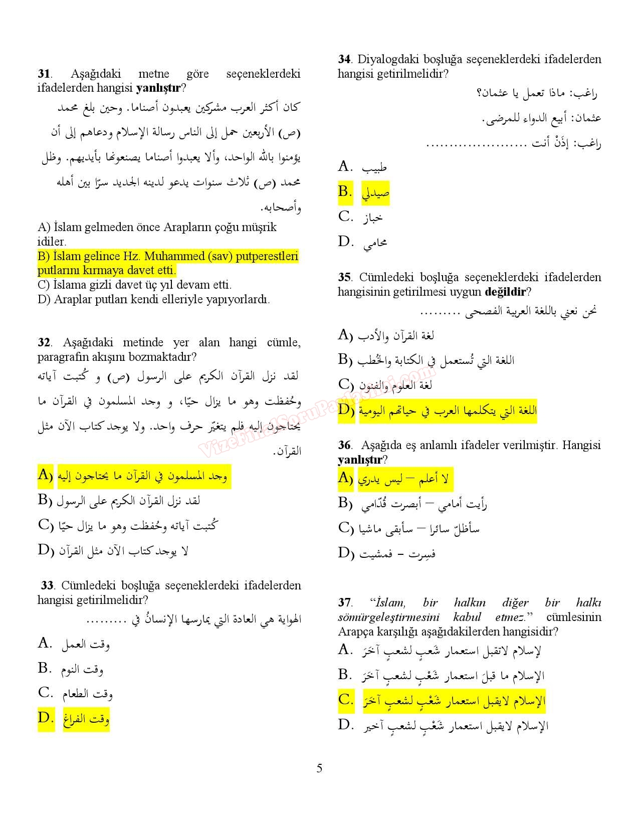 Arapça Hazırlık Bütünleme Soruları ve Cevapları