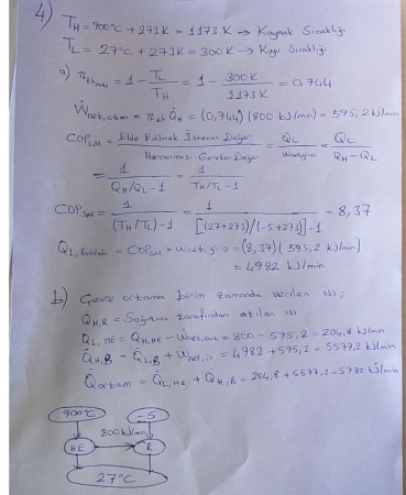 Termodinamik -2 Vize Soruları ve Cevapları -2017