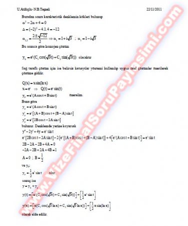 Diferansiyel Denklemler Yaz Okulu Vize Soruları Ve Cevapları-2011 12-12-2014, 14:52
