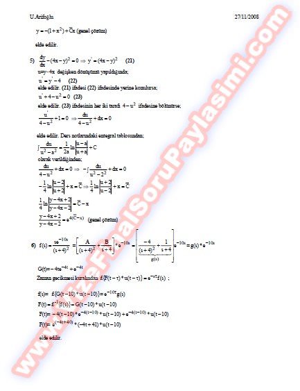 Diferansiyel Denklemler Vize Soruları Ve Cevapları-2011 12-12-2014, 14:57