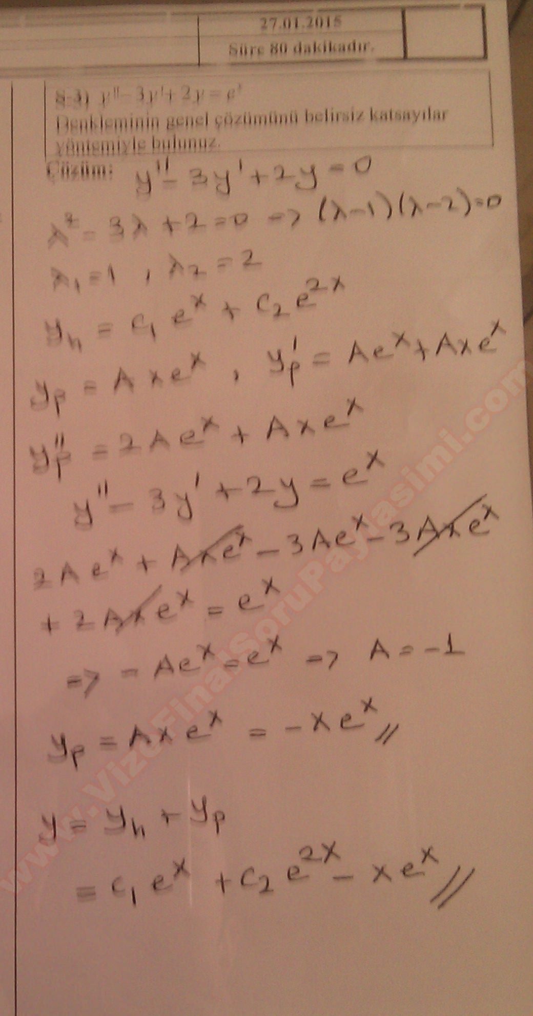 Mühendislik Matematiği (Diferansiyel Denklemler) Vize Soruları 20-07-2014, 21:59