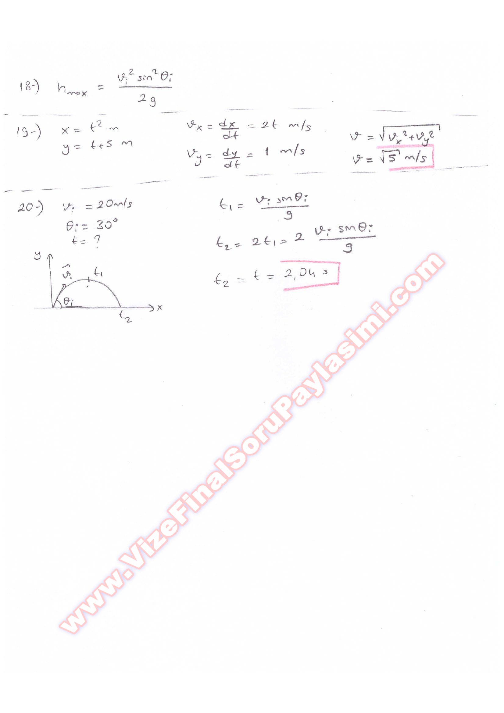 Vize ve Final Soruları / Cumhuriyet Üniversitesi / Fizik-1