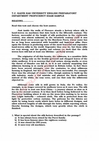 Kadir Has Üniversitesi İngilizce Muafiyet Soruları