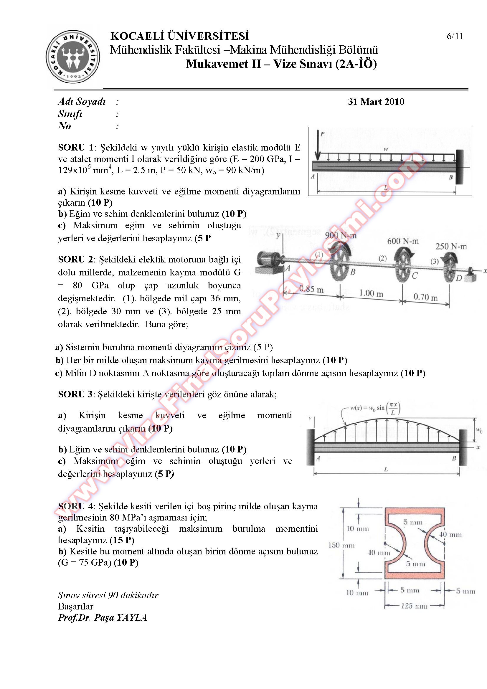 Mukavemet 2 Bütünleme Soruları ve Çözümleri 23-07-2014, 21:20