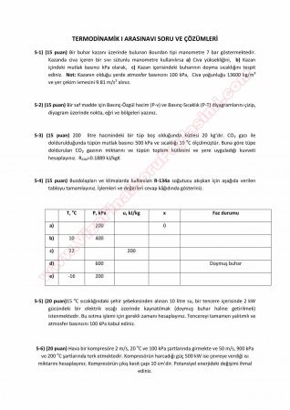 Vize ve Final Soruları / Yıldız Teknik Üniversitesi / Termodinamik -1 Dersi