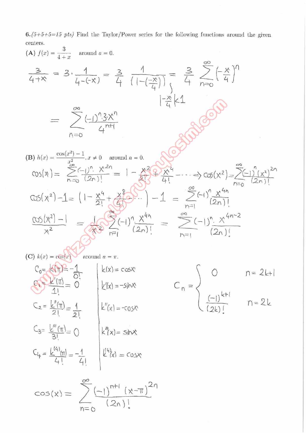 Vize ve Final Soruları / ODTÜ / Calculus for Functions of Several Variables