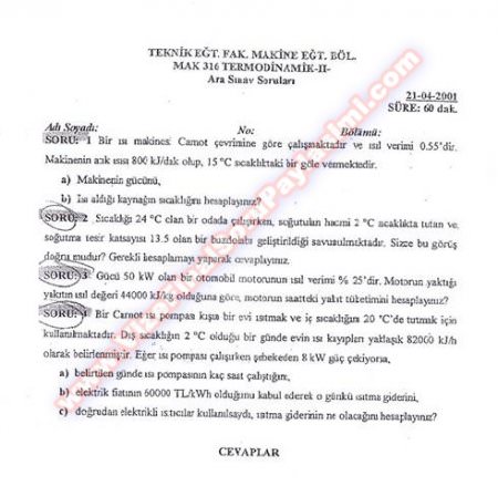 Vize ve Final Soruları / Bülent Ecevit Üniversitesi / Isı Transferi Dersi