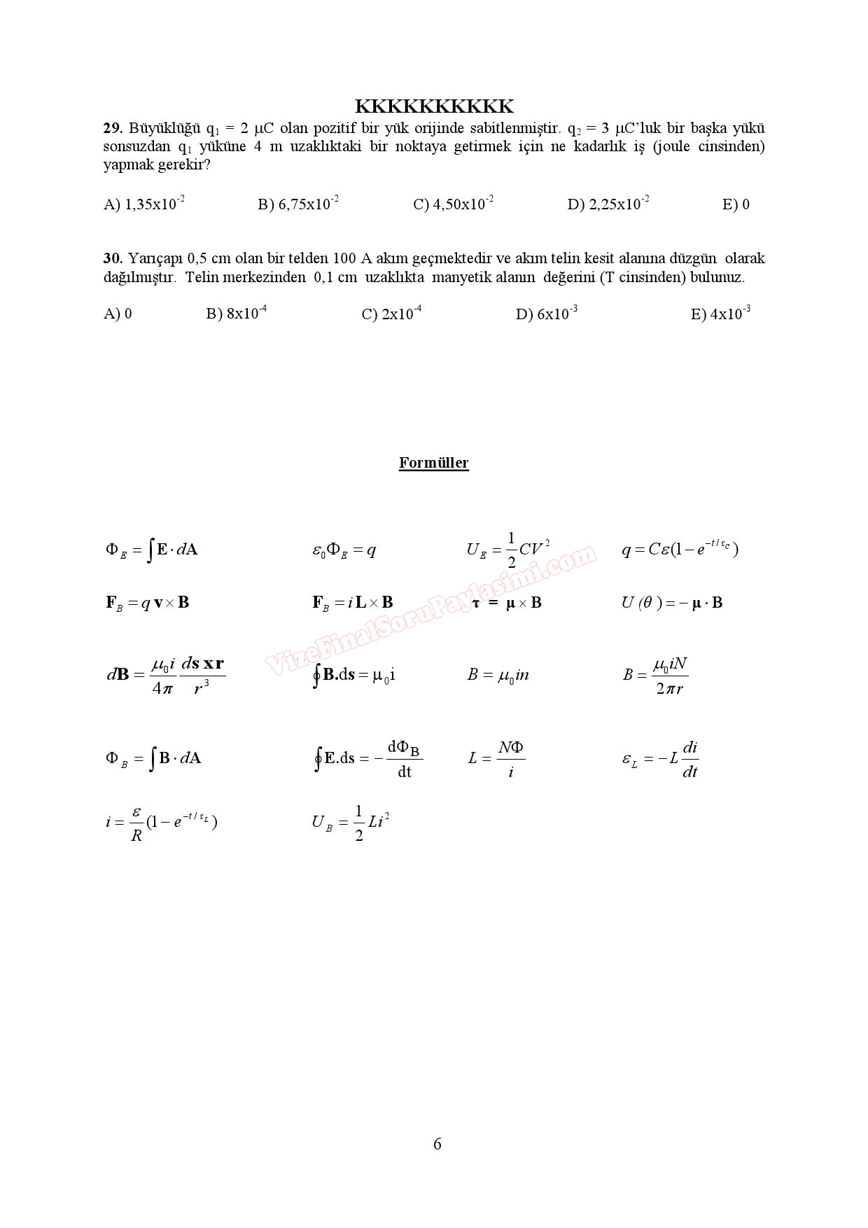 Fizik -2 Genel Sınav Soruları 10-06-2017, 15:18