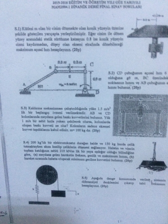 Dinamik Dersi Final Soruları ve Cevapları Vize Soruları ve Cevapları Süleyman Demirel Üniversitesi SDÜ 2017