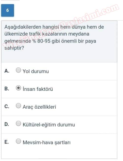 Trafik Güvenliği Dersi Sınav Soruları 13-05-2018, 01:28