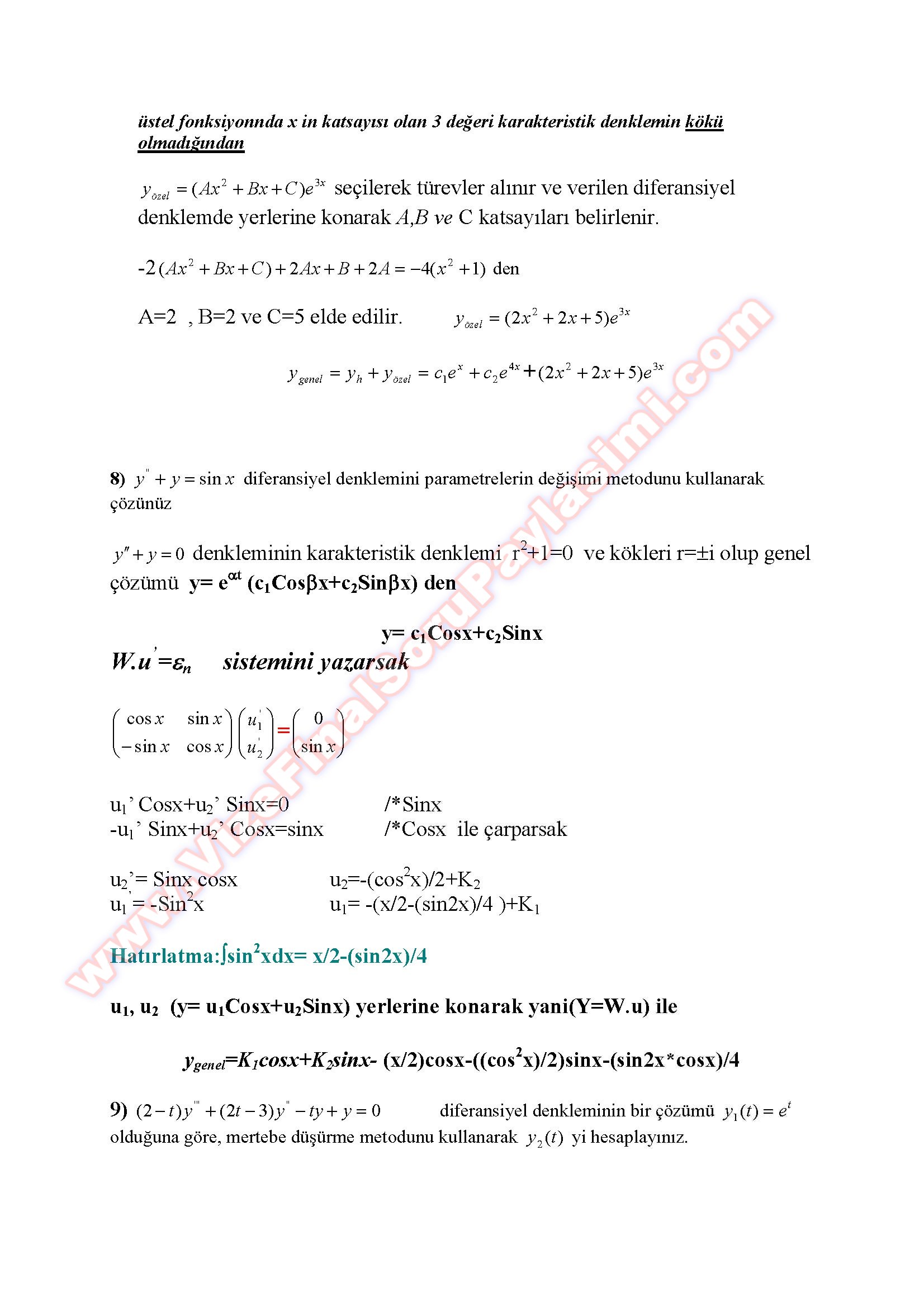 Üniversite Ders Notları / Diferansiyel Denklemler Ders Notları