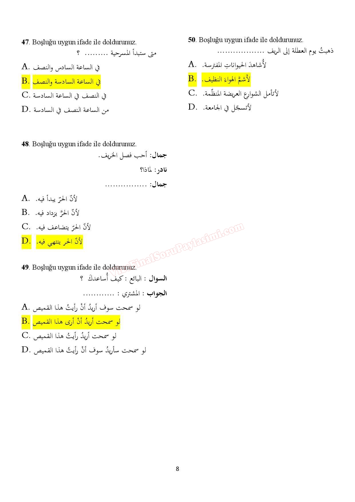 Vize ve Final Soruları / Süleyman Demirel Üniversitesi / Arapça Hazırlık Soruları