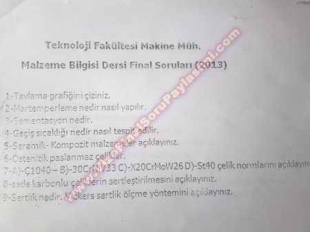Vize ve Final Soruları / Sakarya Üniversitesi / Malzeme Bilgisi Dersi