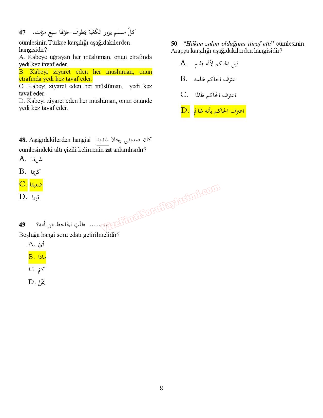 Vize ve Final Soruları / Süleyman Demirel Üniversitesi / Arapça Hazırlık Soruları