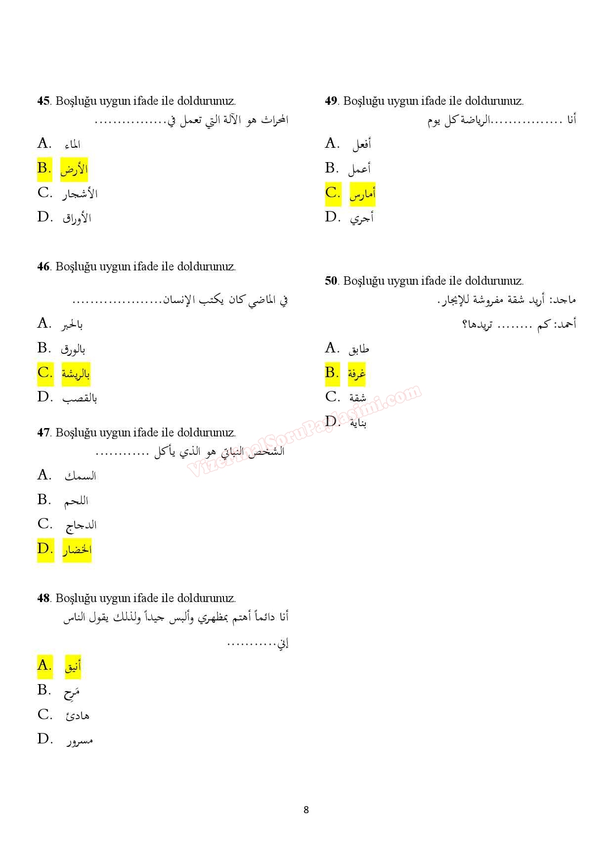 Vize ve Final Soruları / Süleyman Demirel Üniversitesi / Arapça Hazırlık Soruları