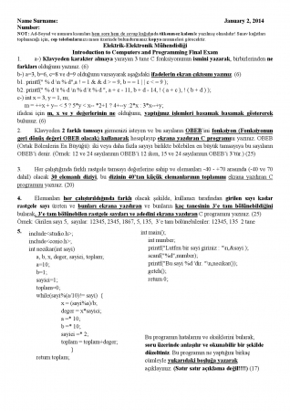 Anahtar Kelimeler: İstanbul Üniversitesi Bilgisayar Programlama Final soruları sorular iu
