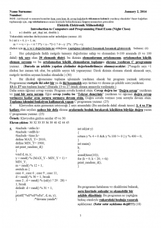 Anahtar Kelimeler: İstanbul Üniversitesi Bilgisayar Programlama Final soruları sorular iu